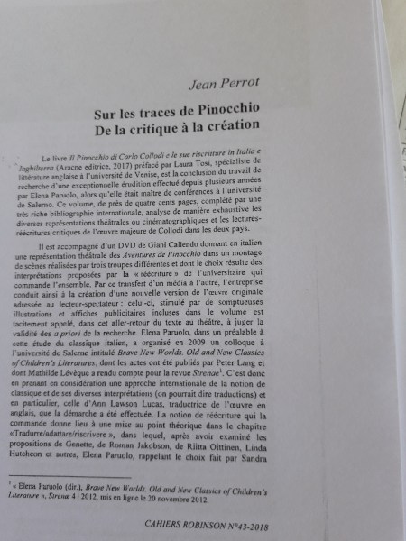 NUOVA BELLA RECENSIONE DEL PINOCCHIO DI ELENA PARUOLO