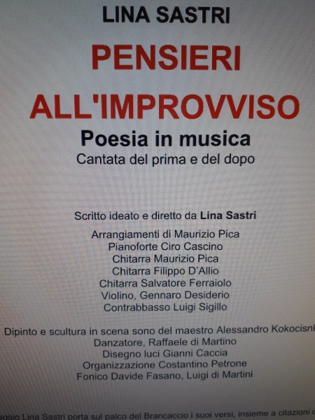 Lina Sastri – Pensieri all’improvviso Poesia in musica Cantata del prima e del dopo – al teatro Brancaccio (Roma) 9 maggio 2019