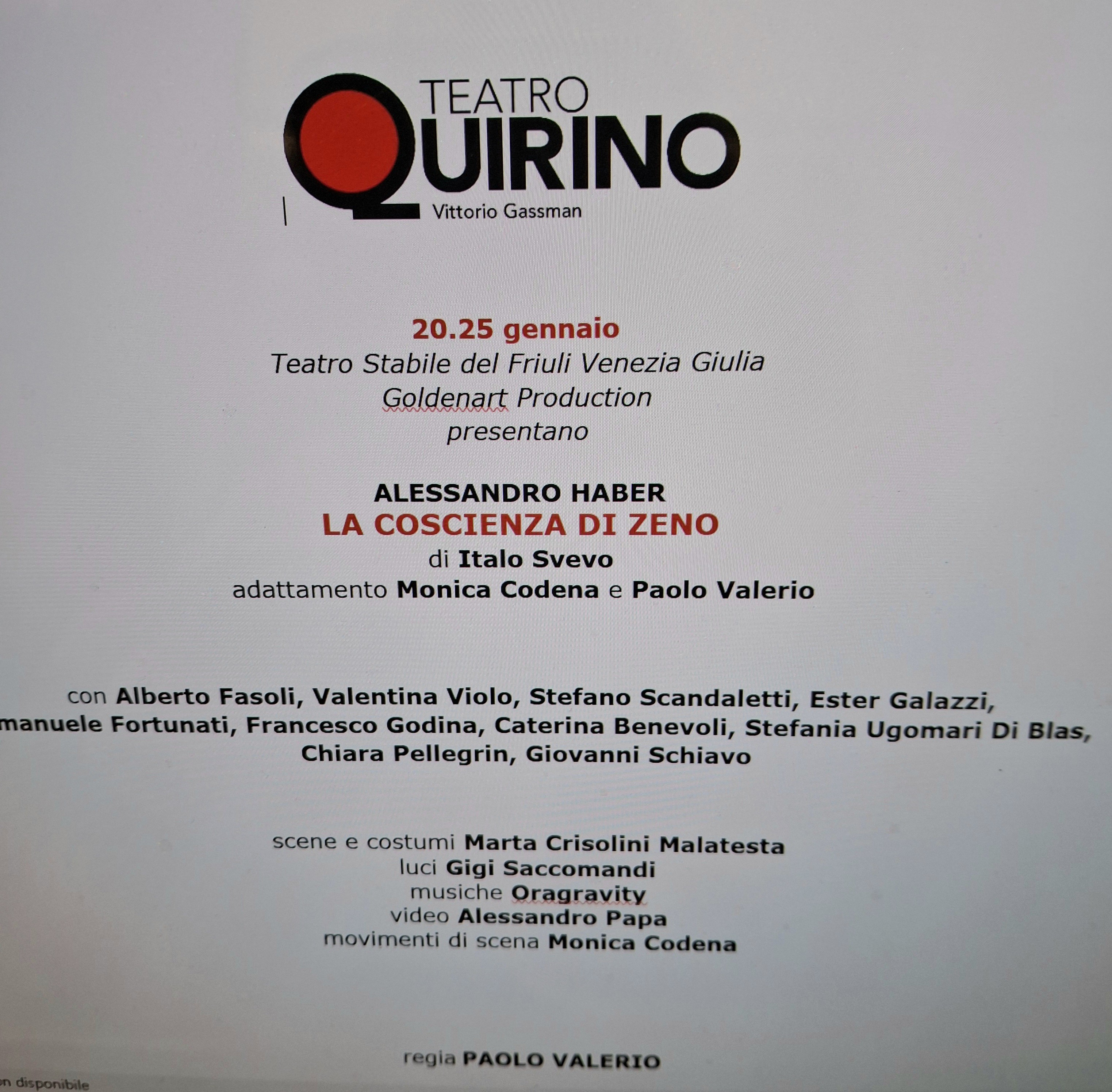 “La coscienza di Zeno – sottolinea il regista – è per me è una sfida davvero particolare. Zeno ci appartiene, racconta di noi, della nostra fragilità, della nostra ingannevole coscienza, della voce che ci parla e che nessuno sente e che ci suggerisce la vita. Ho affrontato questo lavoro privilegiando fortemente la narrazione di Svevo: ho voluto racchiudere in questa esperienza teatrale alcune pagine che trovo straordinarie, indimenticabili, costruendo un altro Zeno accanto all’Io narrante. Quindi Zeno – interpretato da Alessandro Haber – si racconta e si rivive attraverso il corpo di un altro attore. Attraverso l’occhio scrutatore del Dottor S. ho cercato di restituire la dimensione surreale – ironica e talvolta bugiarda – di Zeno, immersa nell’atmosfera della sua Trieste e di tutti gli straordinari personaggi che la vivono. Un immaginario il cui respiro cerebrale dialoga con il mondo dell’arte, con la psicoanalisi e dove ho cercato di rendere con forza la dialettica fra “esterno e interno” nella spietata analisi che Zeno fa della propria esistenza, lasciando costantemente aperta una finestra sul proprio mondo interiore. Il nostro spettacolo vorrebbe essere proprio così, come dice Zeno Cosini: “La vita non è né bella né brutta, ma è originale”.